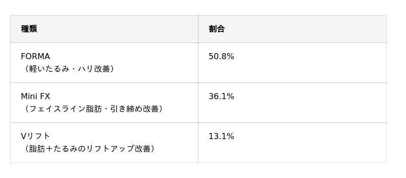 – 受けた施術の種類はFORMAが過半数で最多