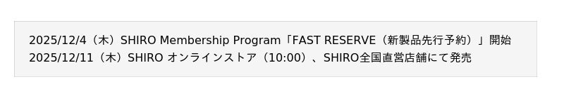 公式Instagram:https://www.instagram.com/shiro_japan?igsh=NTc4MTIwNjQ2YQ==