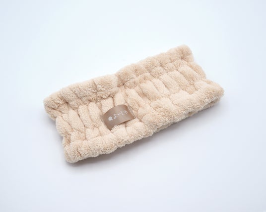 日々のスキンケア時にふわふわ素材でシンプルデザインのオリジナルヘアバンドをぜひご使用ください。