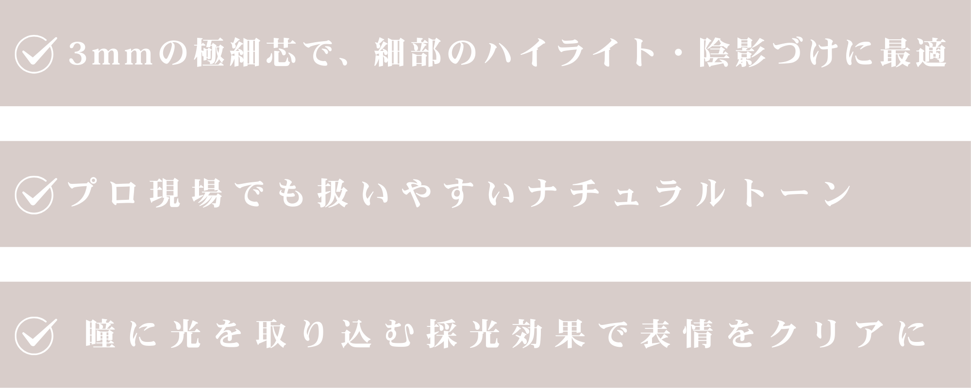 極細の筆先が眉の細部まで正確に捉え、繊細かつ自然な仕上がりを実現します。