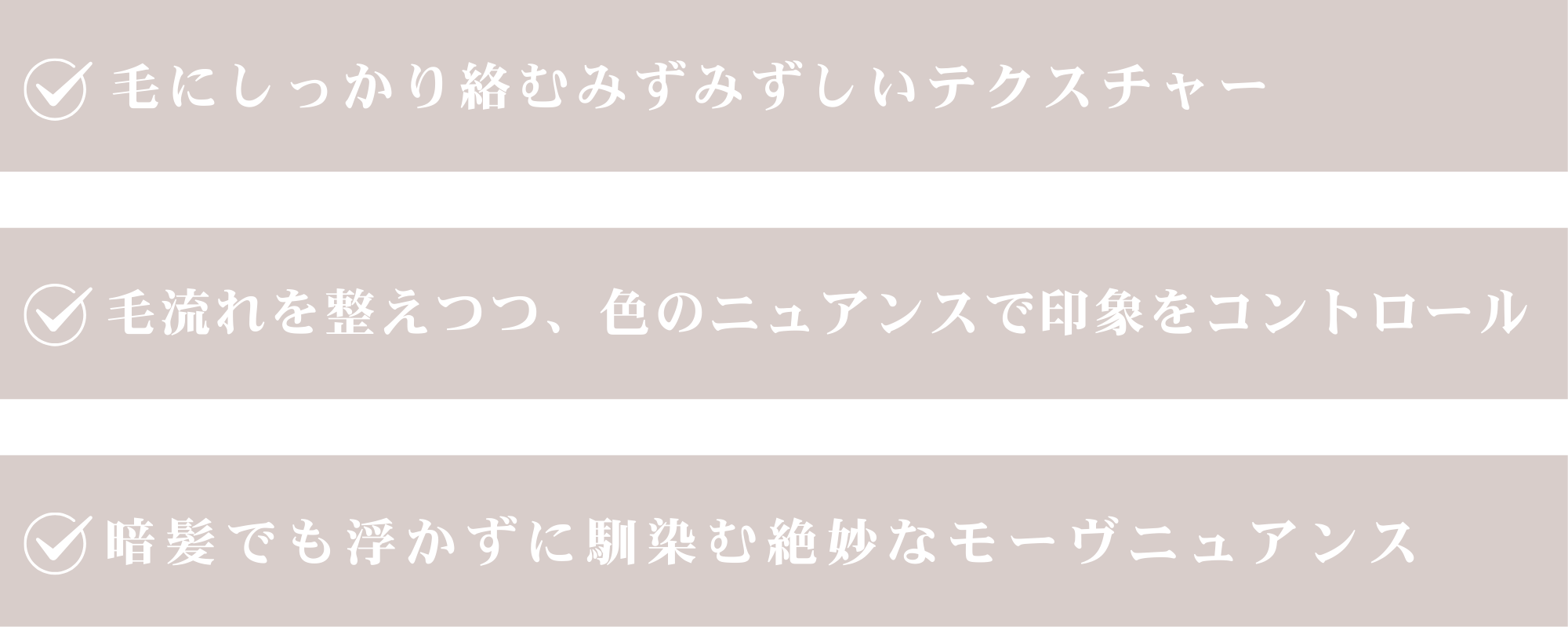 黄みにも赤みにも寄らない、ブラウンにグレーを一滴落としたような“淡く透ける上品なカラー”で、眉に旬のニュアンスをプラスします。