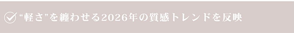 どのパーツにも自然に溶け込み、重ねても必ず“綺麗に着地”するよう設計されています。