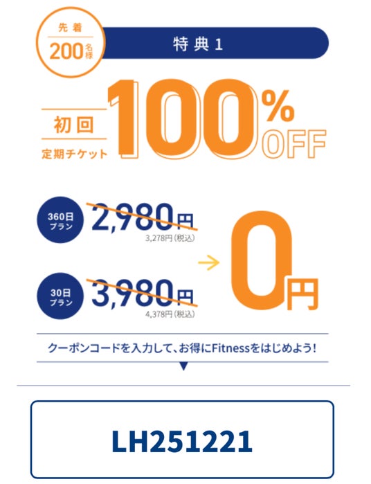 期間中に登録された方は、なんと初月1ヶ月分の利用料金が無料となり、費用を抑えながらLifeFitでのトレーニングをスタートできます。