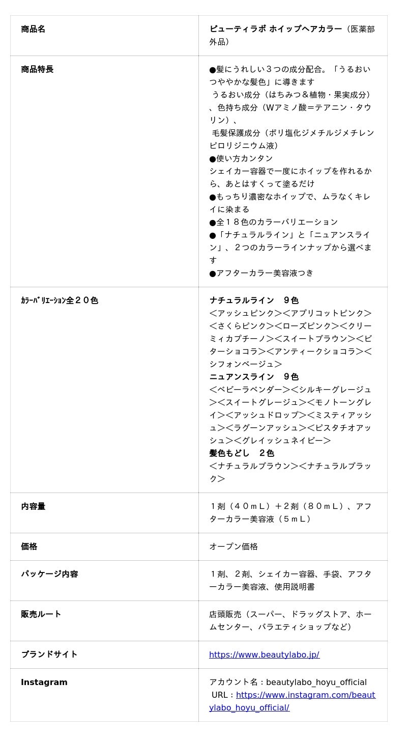 ●ビューティラボ ホイップヘアカラー 商品概要
