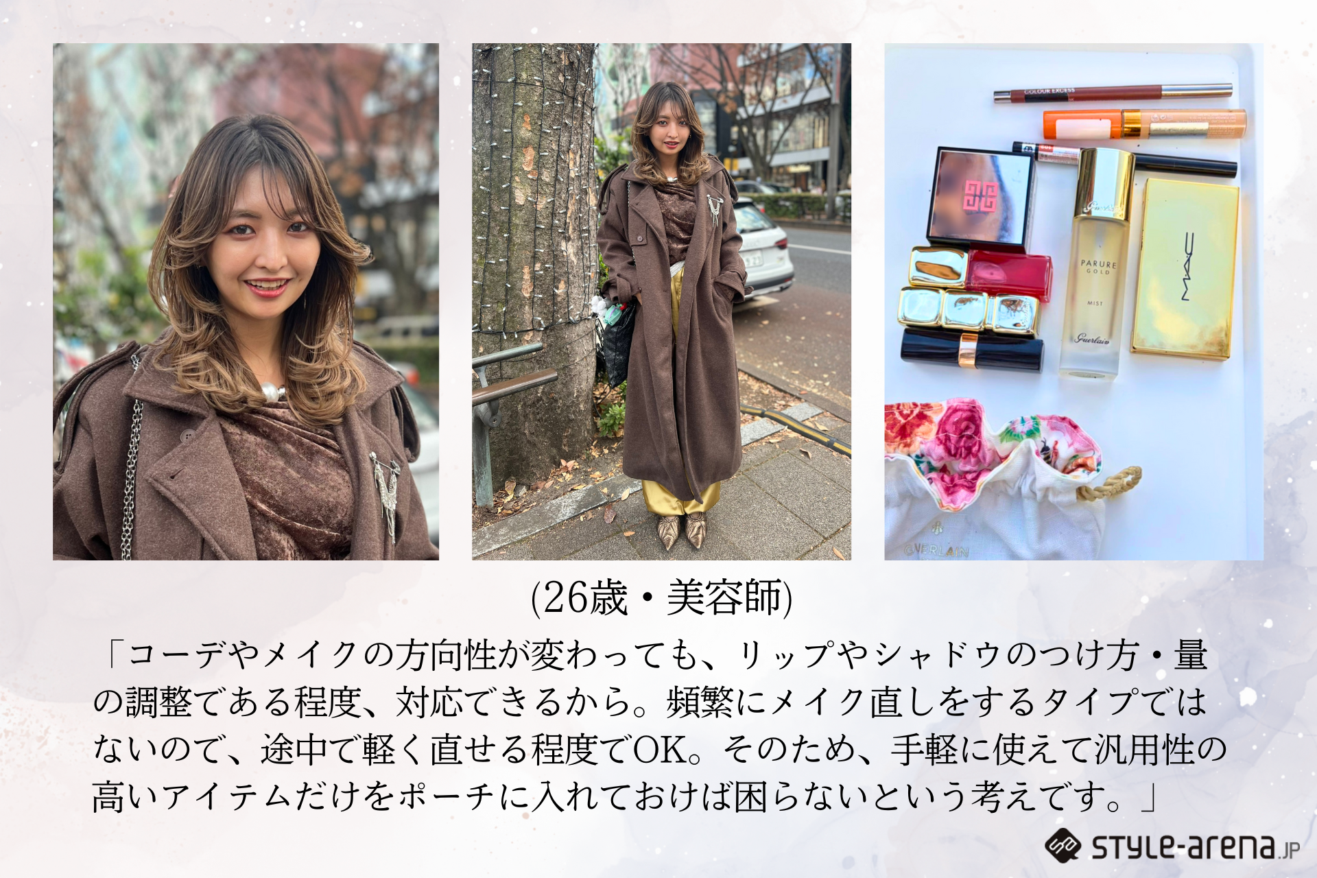 今回はその中でも「変えない派」21名にフォーカスし、表参道で深掘りインタビューを実施。コーデはTPOや気分に合わせて変えても、ポーチの中身は変えない。