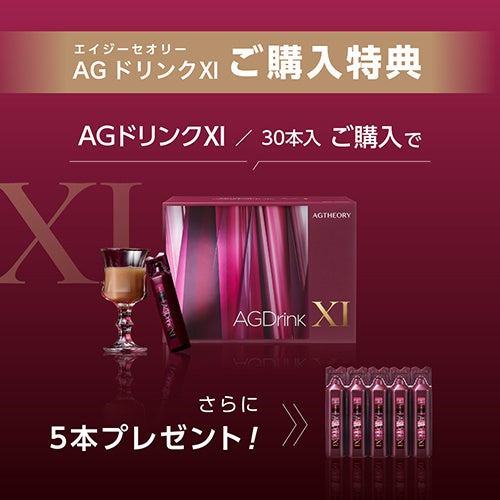 4. エイジーセオリー AGドリンクⅪご購入特典 エイジーセオリー AGドリンクⅪ(イレブン)30本入りをご購入いただいた方に、さらに5本プラスでプレゼント。