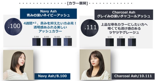 ・.100「ネイビーアッシュ」(全4種):赤みを4週間(*2)抑え、透け感あふれる凛としたアッシュを実現。