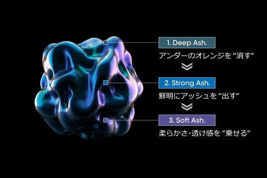 既存のアッシュ系薬剤と比較し、アッシュ系色素を約3倍配合することで、高発色かつ鮮明な染め上がりと、多角的なアプローチによる透け感の演出を可能にしました。