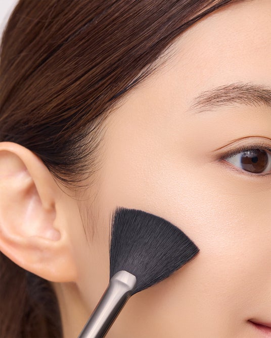 扇形のフォルムが、頬骨・鼻筋・鎖骨などの広い面から細部までフィットし、光を置く位置を直感的にコントロールできます。