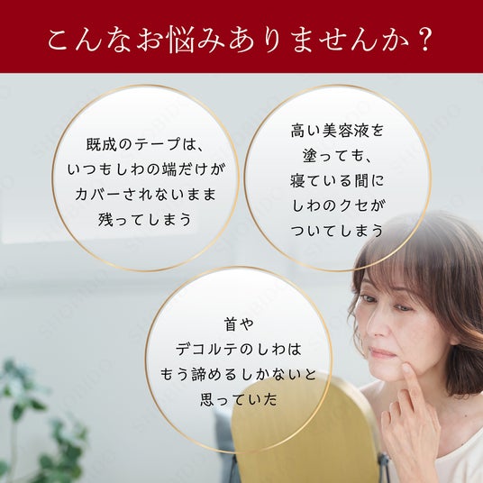 ・寝る前に貼るだけで、睡眠中にテープが肌をピンと伸ばし、表情じわを物理的にプレス