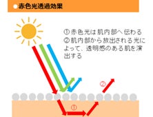 赤色光を透過することで、シミ・シワ・毛穴をぼかしながら、明るく透明感のある肌を演出します。