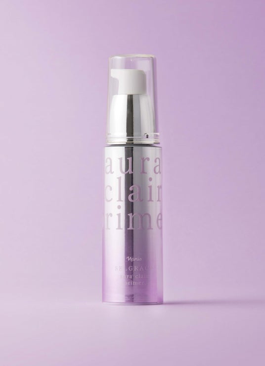 「セルグレース オーラクレール プライマー」は、日本人の肌をきれいに見せるラベンダーカラーのトーンアップベース。くすみやにごりを取り払い、その人の肌色を生かしながら透明感を引き出し、夏場でも涼しげな表情を演出できます。皮脂吸収パウダー/ヒドロキシアパタイト(基剤)配合で、ピタッとした化粧膜を形成することで、テカリやメイク崩れを防ぎ、つけたてのきれいな肌が続きます。SPF30/PA+++で日中の紫外線対策も可能です。
