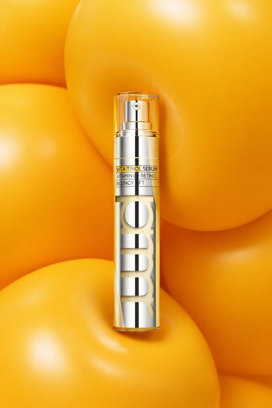リニューアルされた「ビタチノール バウンシー リフト セラム」は、ビタチノール含有量を従来比約2倍*⁷に増量し、1本あたりのビタミンC*¹とレチノール*²の総配合量を、従来品に比べ純成分+誘導体を含め約2倍*⁷以上に増量しました。ただし、美容成分の純粋成分と誘導体の配合バランスを最適化することで、高濃度でありながら刺激感を抑えた黄金比レシピを実現しました。