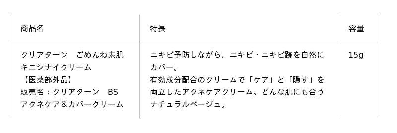 メイクや不規則な生活、外的刺激※により、肌にストレス※や負担を感じている方が増加し、「ニキビができた際、日中はなるべく隠したい、ニキビの上から普段のベースメイクをすることには抵抗がある」といった肌悩みを抱えている方も多い状況にあります。このような背景から、このたび、ニキビをカバー*しながら、ケアもできる「キニシナイクリーム」を発売します。