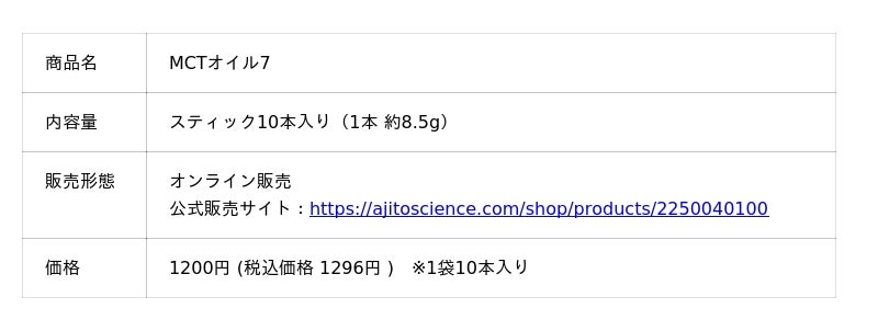 「MCTオイル7」は、“1包でしっかり7gのMCTオイルが摂れる”ことを表した商品名です。
