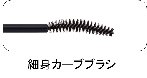 小回りのきく先細り形状と、目の形に沿ったカーブのスプーン型ブラシを採用。