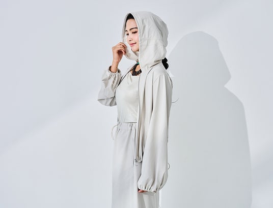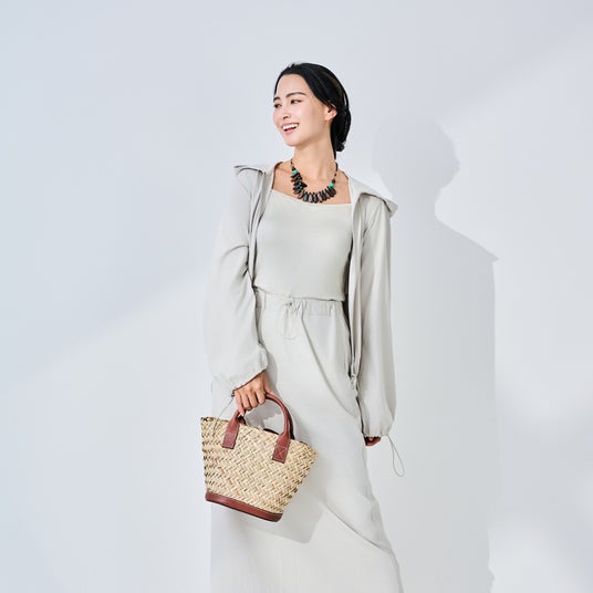 上下同素材で、紫外線・近赤外線から全身を守るコーディネートが完成。