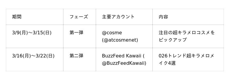 BuzzFeed Japan株式会社が運営する「BuzzFeed Kawaii」は、コスメ・美容の総合サイト「@cosme」と共同で、2026年3月9日(月)より、SNSプラットフォームを横断したコラボレーション企画を実施中です。