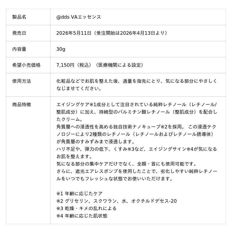 株式会社ナノエッグは、医療機関専売スキンケアブランドを「ナノメッド」から「@dds」へ刷新。レチノール・ハイドロキノン美容液をリニューアルし、2026年5月より順次発売します。