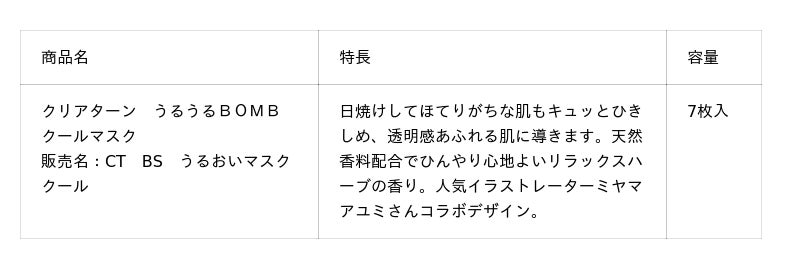コーセーコスメポート株式会社(本社:東京都中央区、代表取締役社長:小林 孝雄)は、スキンケアブランド『クリアターン』から、「うるうるBOMB クールマスク」(1品目1品種、ノープリントプライス)【医薬部外品】を2026年4月21日に、全国の量販店・ドラッグストアを中心に数量限定で順次発売します。