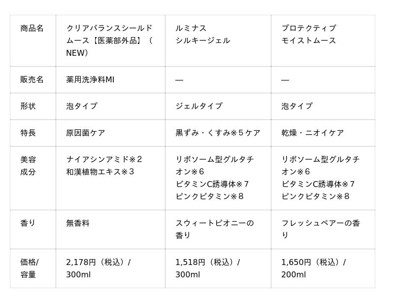 ※1 2024年10月~2025年12月の自社売上金額実績 ※2 ニコチン酸アミド ※3 トウキエキス(1)、シャクヤクエキス、ジオウエキス、センキュウエキス、ヨクイニンエキス、ツボクサエキス(すべて保湿成分) ※4 リン酸L-アスコルビルマグネシウム ※5 汚れや古い角質※6 グルタチオン、レシチン(整肌成分) ※7 パルミチン酸アスコルビル、リン酸アスコルビルMg(整肌成分)※8 シアノコバラミン(整肌成分)※9 潤いやハリのあるお肌