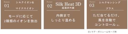 本商品は、KINUJO独自の3レイヤーの「シルクテクノロジー」を搭載し、速く乾かすだけでなく、保水性をアップさせ仕上がりの美しさまで追求しました。使用モードに応じて2種類のイオンを放出する「シルクイオン&マイナスイオン」、超遠赤外線・遠赤外線の「Silk Heat 3D」、髪との距離を検知し、風を自動で最適化する「シルクセンシング プラス」の3つのアプローチにより、髪のうるおいを守りながら乾かし、さらさらしっとりとした質感へ導きます。毎日のドライ時間の中で、まとまり感や指通りのよさまで実感できる、ハイエンドモデルならではの仕上がりを目指しました。