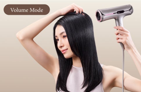 本商品には、従来のマニュアルモードに加え、新たにボリュームモード・ケアモードを搭載。仕上がりや使用シーンに合わせ、3つのモードを選べるようになりました。
