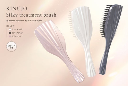 株式会社KINUJO(キヌージョ、本社:東京都千代田区、代表取締役:浜田智章)は、KINUJO初となるヘアブラシシリーズ「KINUJO Silky brush Series」を、2026年4月下旬より順次発売いたします。ラインアップは、持ち運びに便利なミラー付きブラシ「KINUJO Silky jewel brush(キヌージョ シルキー ジュエルブラシ)」、毎日のブラッシングからバスタイムまで使える「KINUJO Silky treatment brush(キヌージョ シルキー トリートメントブラシ)」、そして繊細なスタイリングに適した折りたたみコーム「KINUJO Silky jewel comb(キヌージョ シルキー ジュエルコーム)」の3種です。