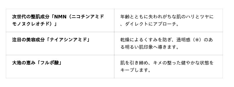 表面を物理的に「固める」だけでなく、内側(※)から肌を健やかに保つための贅沢なフォーミュラを凝縮しました。