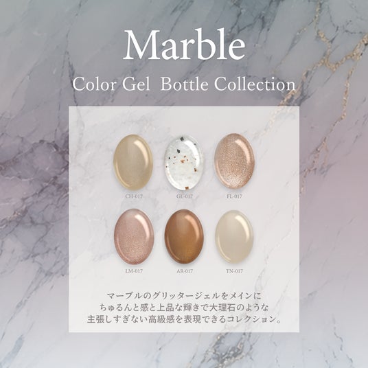 セット内容:CH-017(サテン)/ GL-017(ホワイトマーブル)/ FL-017(ピンクグレープフルーツ)/ LM-017(ベリーヴェール)/ AR-004(ウォームオーラ)/ TN-017(ミルクティーベージュ)