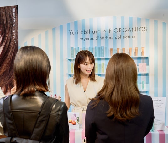 さらに、4月18日(土)に「Cosme Kitchen BEAUTY NEWoMan新宿店」にて開催予定の蛯原友里さん出演の「Yuri Ebihara×F ORGANICS rayures d’herbes collection」発売記念来店イベント(事前予約制)は、予約受付開始と同時に多数の申し込みが殺到し、当日中にすべての枠が埋まる結果となりました。展示会での反響に加え、お客様からの高い関心が数字としても表れる形となっています。