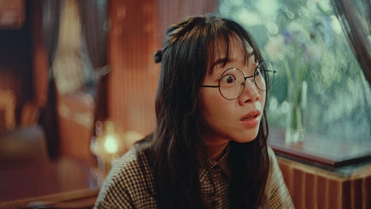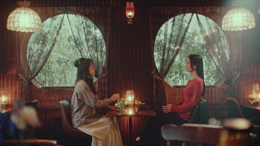 舞台は、休日のレトロなカフェ。前作「冬ですね」篇に登場した先輩と後輩は、雨模様の窓の外を眺めています。