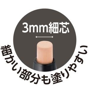 また、繰り出し式の直径3mm細芯が特徴で、濃くて細かいシミもピンポイントに隠すことができ、ニキビあとやポツポツ毛穴、目周りの細かいシミにも塗りやすい仕様です。