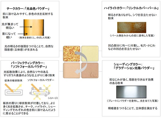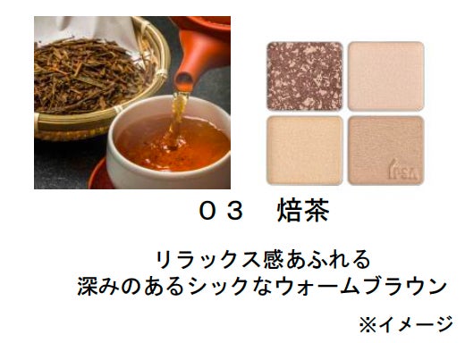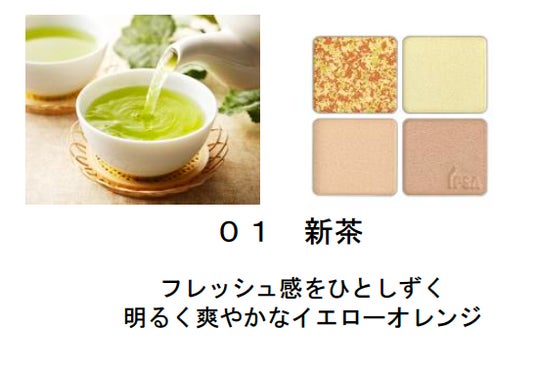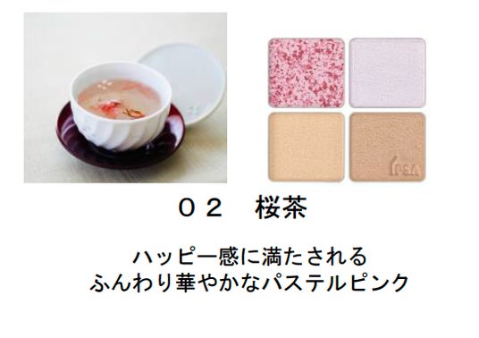 本製品は、チーク、ハイライト、シェーディング、パーフェクティングカラーの4色で構成されており、春の肌に高い透明感を演出する処方を新採用。チークカラーは茶葉のような見た目を作り出す複数の色で構成された成型方法を採用することで、塗布すると複雑に色が混ざり合い、じんわりとにじむような血色感を纏うことができます。また、厳選した3種のオイルを組み合わせたトリートメント成分を配合。乾燥しやすい春の肌でも高い透明感を演出します。さらに、ハイライトカラーには、光を散乱させ繊細な輝きと明るさを生むホワイトエフェクトパウダーを配合。自然な陰影をつくるシェーディングカラー、パーフェクティングカラーもあわせて使うことで、高い透明感とツヤのある肌へ導きます。色調は、爽やかな「新茶」、優雅な「桜茶」、香ばしい「焙茶」をイメージした3種を展開。異なる味わいを楽しめる3種は、自身の仕上げたい印象や、肌測定器イプサライザーで導き出される「血色感」の度合をもとに選定することで、1人ひとりの肌の色に寄り添い、自然な透明感と血色感を与えます。
