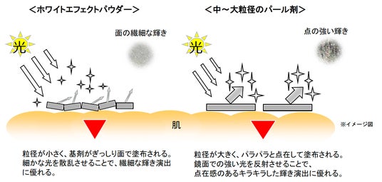 あらゆる方向への光反射に優れ、レフ板を再現する白い光を生み出し、繊細な輝きと明るさを生むパウダー