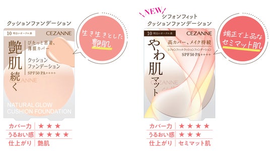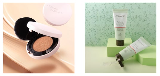 左から「セザンヌ シフォンフィットクッションファンデーション」、「セザンヌ ナチュラルバランシングクリーム」