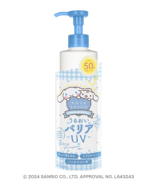 フレグランス、時計、ファッション雑貨等のブランドを取り扱う専門商社である株式会社ウエニ貿易(本社:東京都台東区、代表取締役社長:宮上光喜)は、せっけんの香りをテーマにしたコスメティックブランド「アクア シャボン(https://aquasavon.jp/)」から、株式会社サンリオの「シナモロール」とコラボした「バリアUVジェル ウォータリーシャンプーの香り」の200gポンプタイプと30g直塗りタイプの2種類を2月1日(木)にEC先行発売、2月20日(火)に一般発売いたします。