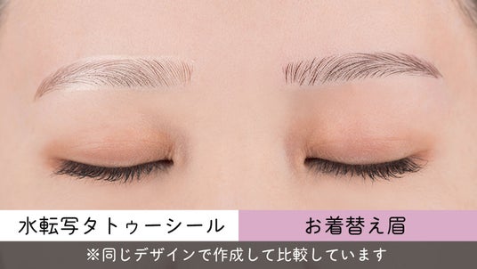 テスト用に水転写タイプ(水で貼り付ける)のタトゥーシールと「お着替え眉」の両方を制作*し、実際に貼って比較してみました。