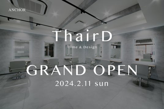 福岡に3店舗の美容室を展開する株式会社ANCHORは、4店舗目となる美容室【ThairD Time & Design(サード)】をオープン致します。「圧倒的美髪サロン」をスローガンに掲げ、お客様一人ひとりのニーズに寄り添ったカウンセリング、最新の設備と卓越した技術、洗練されたセンスで、お客様に「圧倒的美髪」を提供いたします。
