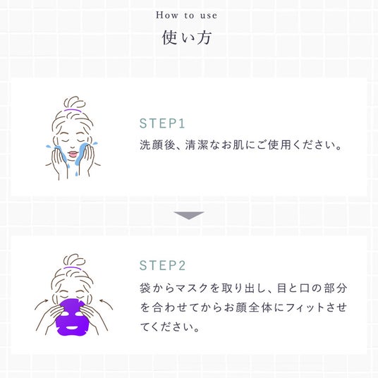 2、目と口の部分を合わせてからお顔全体にマスクをフィットさせてください。