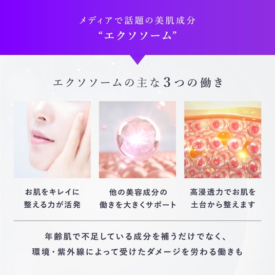 いま話題の成分であるヒトサイタイ血由来幹細胞エクソソーム(整肌成分)配合