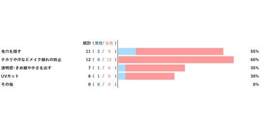 また、その理由は『ファンデーションだけでは鼻の当たりがテカってしまうから』でした。フェイスパウダー(お粉)に関しては、特に男性が使用していないケースが多数でした。