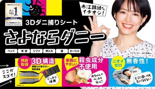 株式会社イースマイル(https://e-smile.co.jp/ 東京都渋谷区、代表取締役:仲村淳)が発売する家族にやさしいダニ捕りシート「さよならダニー」が、「日経POSセレクション2023売上NO.1」を獲得しました。受賞は2023年で5年連続となります。