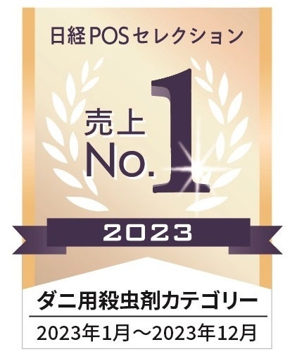 「日経POSセレクション」は、日経POS情報を使用して、日経が作成する約2,000の商品分類(カテゴリー)内で分類売り上げ1位の商品や、売り上げ伸び率が高い商品を取り上げたもの。「売上No.1」は全国のスーパーマーケット、コンビニエンスストア等から収集した販売実績データ(日経POS情報)を基に、年間の来店客千人当たり金額で分類内1位の商品を選出しています。今回は2023年1月から2023年12月の間、「ダニ用殺虫剤カテゴリー」内で最も売れた商品として、イースマイル「さよならダニー」が売上No.1を獲得しました。2019年から5年連続の受賞です。