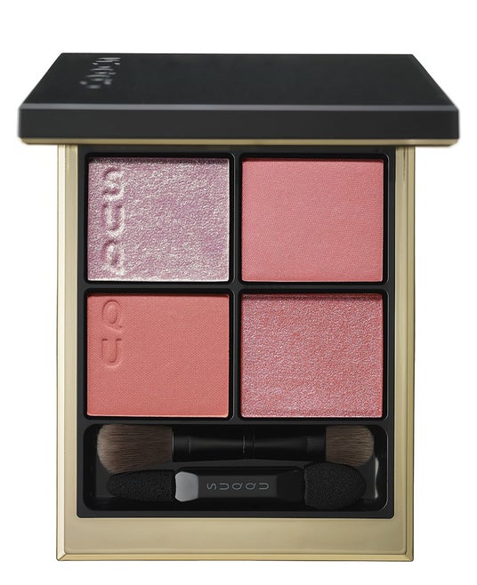 マット、パール、シャイニーと、カラーごとに質感と発色を調整したコーラルベージュの新パレット。異なる質感のレイヤーで内面のあたたかさを感じるような、肌なじみでありながら甘さの中に、モードを感じさせるモダンな仕上がりに。
