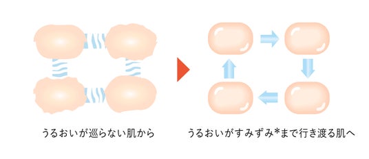 肌内部にある水分の通り道を整える働きがあるといわれるザクロエキス※を新配合し、クレンジング後はまるでブースター(導入美容液)を使ったかのよう。後につけるスキンケアがぐんぐん浸透*し、うるおいがすみずみ*まで行き渡る肌に整えます。