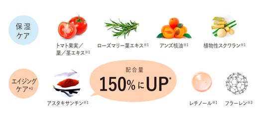●『バームオレンジ ルビーリッチ』はエイジングケア*3対応成分のアスタキサンチン※1が 150%にUP*!