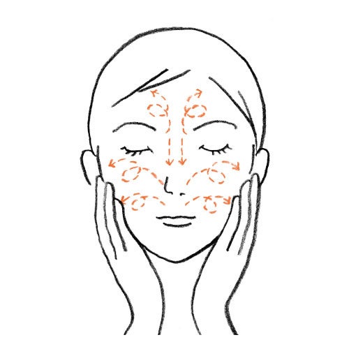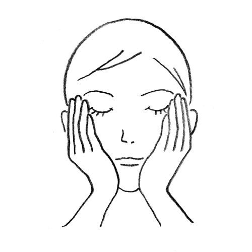 2.深呼吸で香りを楽しみながらやさしくメークとなじませる。