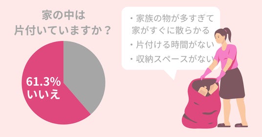 61.3%のお母さんが、「家の中は片付いていない」と回答しました。