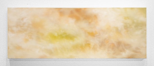 高屋にとって作品制作とは、自らのいる空間の根源、あるいは「現象の立ち現れる源」を、身体を通して立ち上げる行為です。鑑賞者が作品の前に立つ時、自らを「大いなる自然の循環」の一部として感じられるような、その空間にただ佇むことができるような装置として、高屋は絵画作品を制作しています。